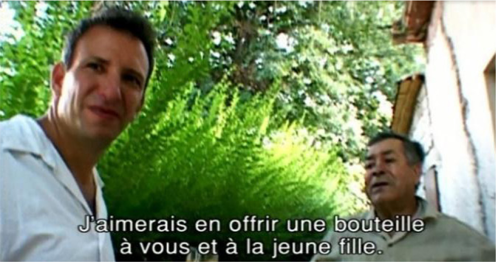 In a nutshell, while the alternative embodied in the device ‘in deeds’ supports the narrative in its contestation of a certain state of cultural globalization, we can also say that it blurs this contestation, and in a way supersedes it. The point is no longer wine globalization but rather cultural globalization. The marque-terroir of global–local opposition is eclipsed by the possibility of going beyond this opposition. Resistance against is less relevant than the assertion of a positive, concrete alternative. Thus, while the narrative constructs an alternative critical version of the world, the integration of the filmic device into the narrative in its own way challenges the alternative conveyed by the narrative. The gap that the film inserts between the narrative and device enhances its political dimension, enabling it to reach out to a higher complexity.