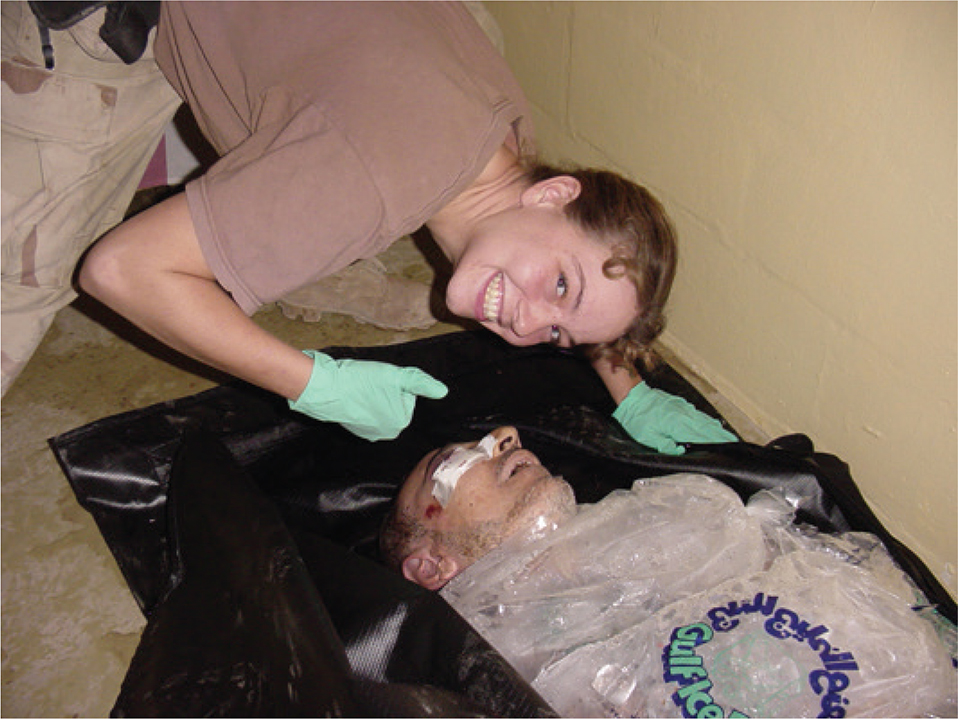 Analyzing a more recent exhibition of smiles in the presence of dead people, Erroll Morris gives a powerful demonstration of the subtle use of this effect (Morris, 2011). Among the many shocking pictures taken by soldiers at the infamous Abu Ghraib prison in Iraq after the 2003 invasion by US forces, one shows a young woman bending over a dead body with a wide smile (Figure 9). The woman is a soldier from the Military Police (MP), guarding the prison, and the dead body is one of the prisoners. The picture was published in the US press with the caption ‘The Ghoul.’ In his investigation, Morris notes: “We don’t understand what the photograph means, nor what it is about. Instead of asking: ‘Who is that man?’ ‘Who killed him?’ the question becomes: ‘Why is this woman smiling?’” (Morris, 2011, p. 118). The Military Police soldier was just supposed to take care of the body, a very ordinary task for MPs at Abu Ghraib. She had been told that the prisoner had had a heart attack. In fact, he had been tortured to death by special agency investigators. Though she herself participated in maltreatment of prisoners (and was later sentenced to 6 months), she was never involved in the torturing or disposing of prisoners. Indeed, that night, suspecting the cause of the prisoner’s death, she conducted a private, covert investigation, because she felt bad about the generalized deviance happening in the prison. As for the smile, which in any case is not in itself a maltreatment, the analysis of the facial muscles shows that it was not a ‘genuine’ smile, a smile of pleasure, but a social smile, the one everybody puts on their face when photographed by a friend or a colleague. Morris suspects the US government of having released this picture to divert public attention away from torture and killings committed by the CIA (Central Intelligence Agency) and other agencies in Abu Ghraib toward marginal misconduct by low-ranking servicemen and servicewomen.
