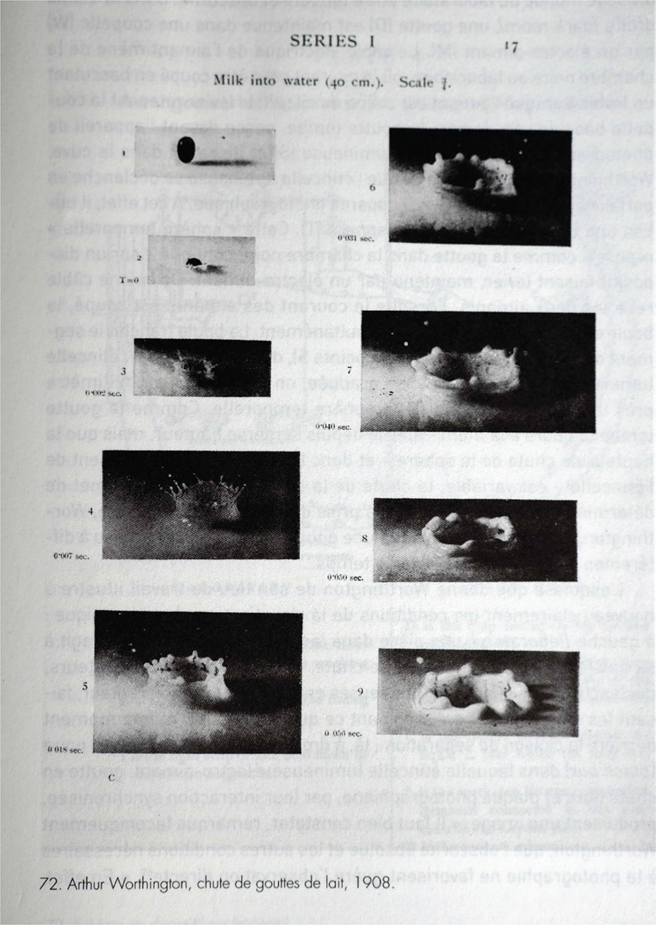 At other times, the researcher just builds a fictitious narrative – fictitious, yet with the ‘raw materials of truth.’ When Arthur Worthington published the beautiful sequence of pictures of a bursting drop of milk (Figure 14), he assembled photos for different drops, because his complex device could take only one picture per drop (Geimer, 2018). The reader believes he sees the same drop falling and bursting – after all, what resembles a drop of milk more than another drop of milk? Yet he is actually seeing nine different drops. Worthington was not only a very clever experimenter but also a very clever storyteller.