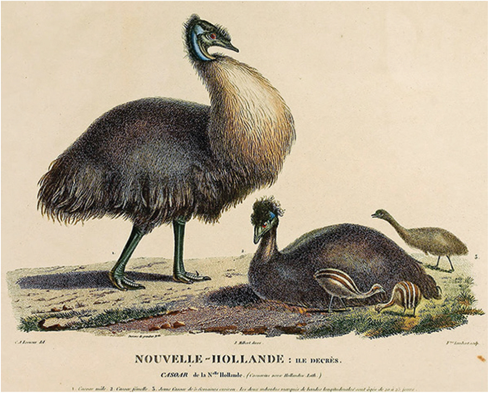 Figure 16. Copperplate engraving of a drawing by Charles-Alexandre Lesueur, made during his voyage in the southern lands in 1800. Source: Quintard, (2018).