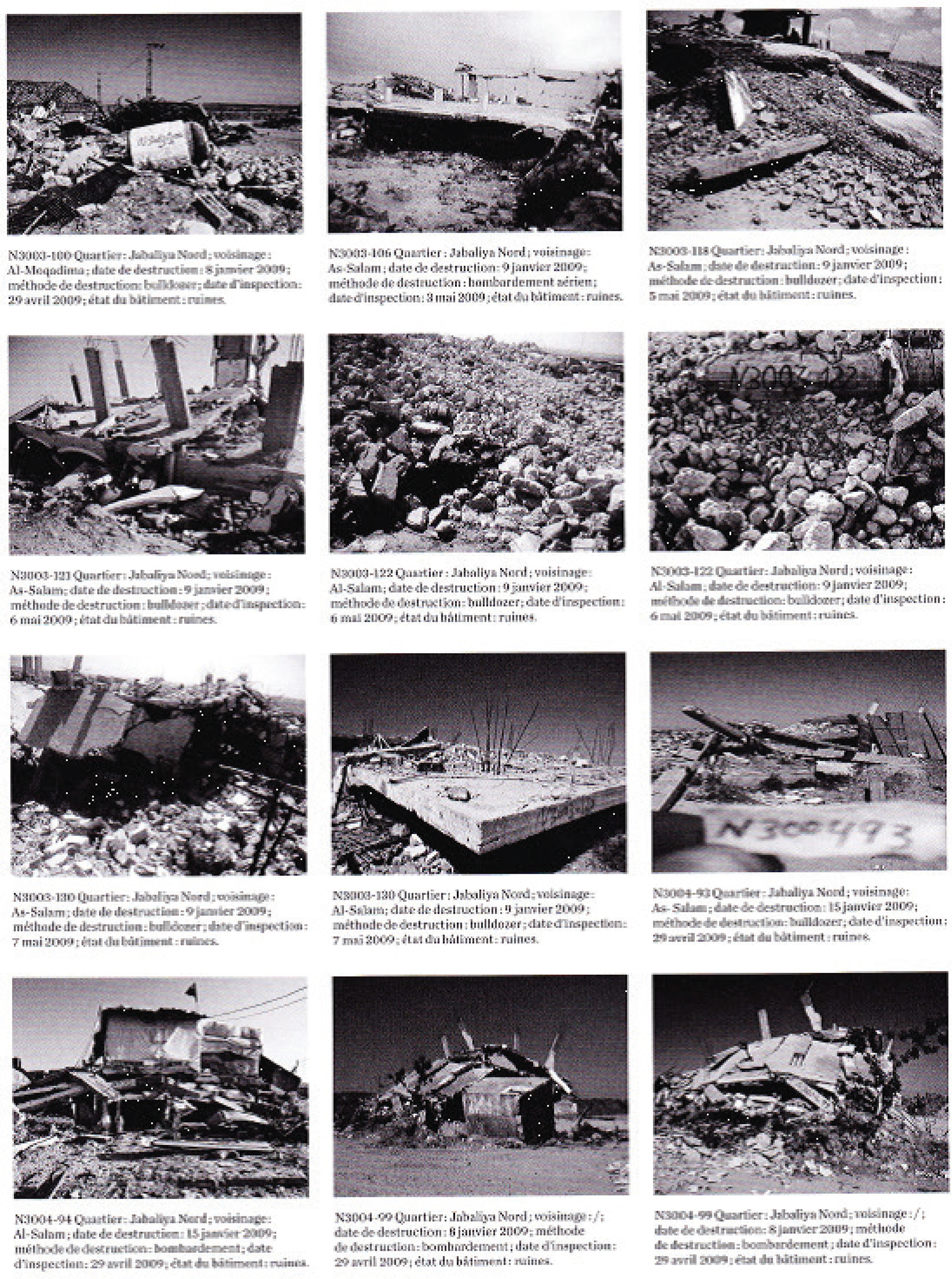 ‘Typifying’ is just an option. More generally, the researcher’s question is which data do I show and how, so that they are convincing? As opposed to ‘typifying’, photographs often use an accumulation strategy. Photos are piled up so that they develop a persuasive strength by their sheer number. In 2009, the Palestine Authority produced a document counting thousands of photos of destroyed buildings in Gaza, as testimony to the destruction caused by the Israeli forces (Weizman, 2015a) (Figure 18). Ruins upon ruins: the invisible becomes visible by its accumulation.